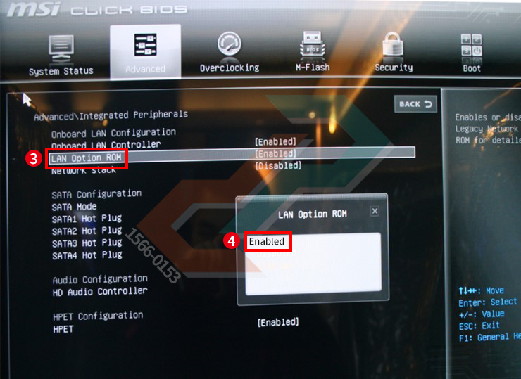 4. LAN Option ROM 을 [Enabled] 로 변경합니다.