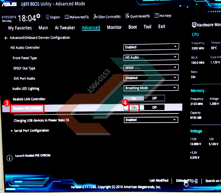 [Realtek PXE OPROM] 메뉴를 선택하고 [On] 으로 바꿔줍니다.