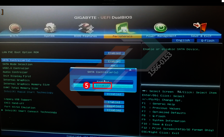 4. ESC 로 나온 뒤, Peripherals 메뉴의 SATA Controller(s) 를 클릭합니다.